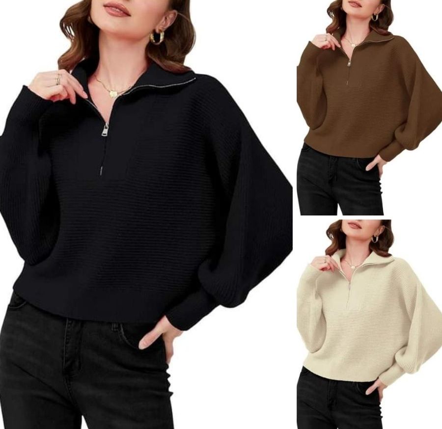 64 % 0FF!! On These Qirno Womens Half Zip Long Sleeve Sweaters V Neck Collar Lantern Sleeve Ribbed Knit Pullover Sweater Fall Jumper Tops!!! At checkout #ad