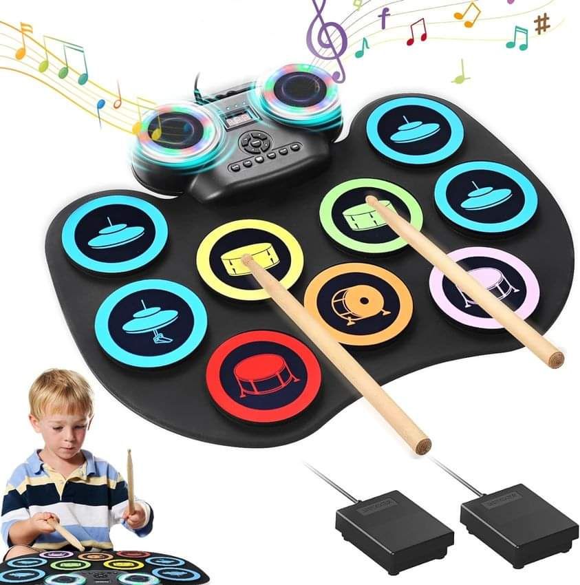 Electronic Drum Set, PARAROSE Portable Roll-up 9 Drum Practice Pad with Headphone Jack, is on deàl clip qpon at checkout #ad