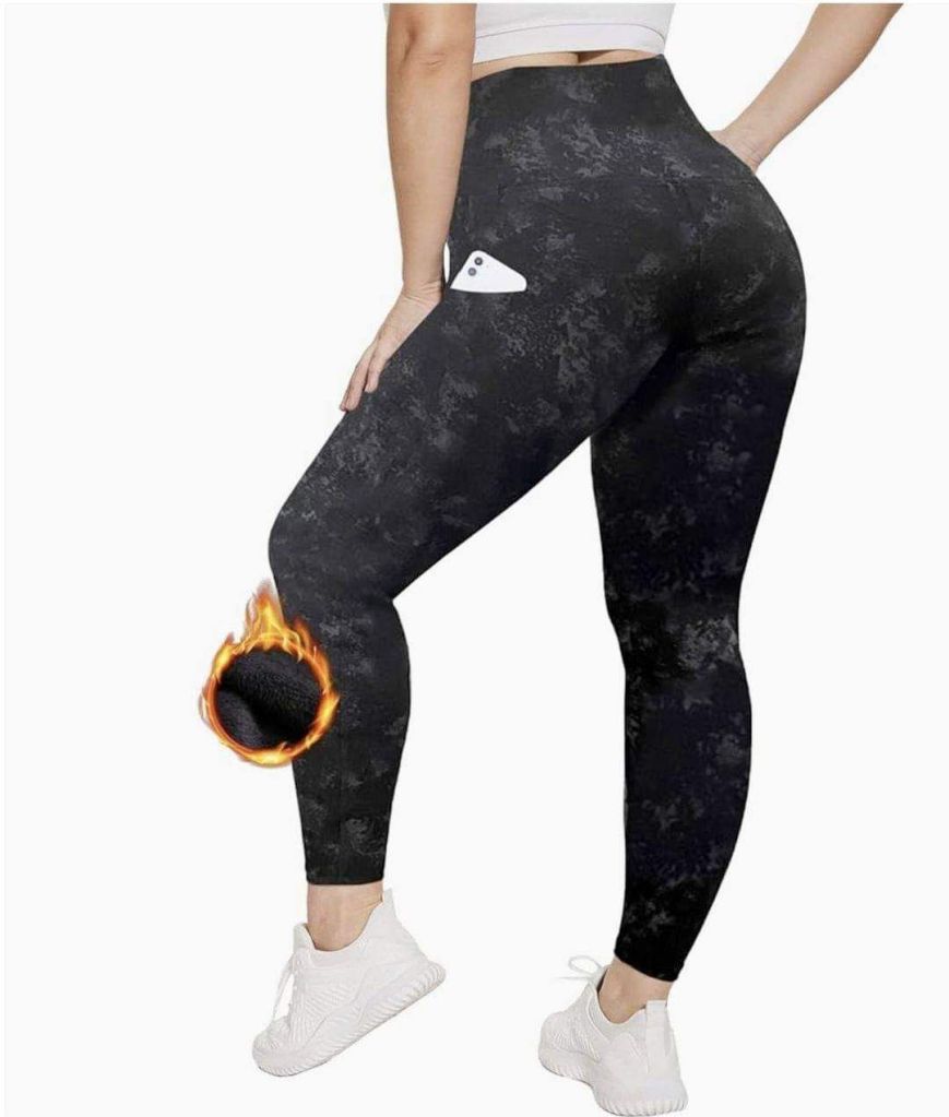 HLTPRO Plus Size Fleece Lined Leggings Women with Pockets – Black Thermal Warm High Waisted Yoga Pants for Workout #ad