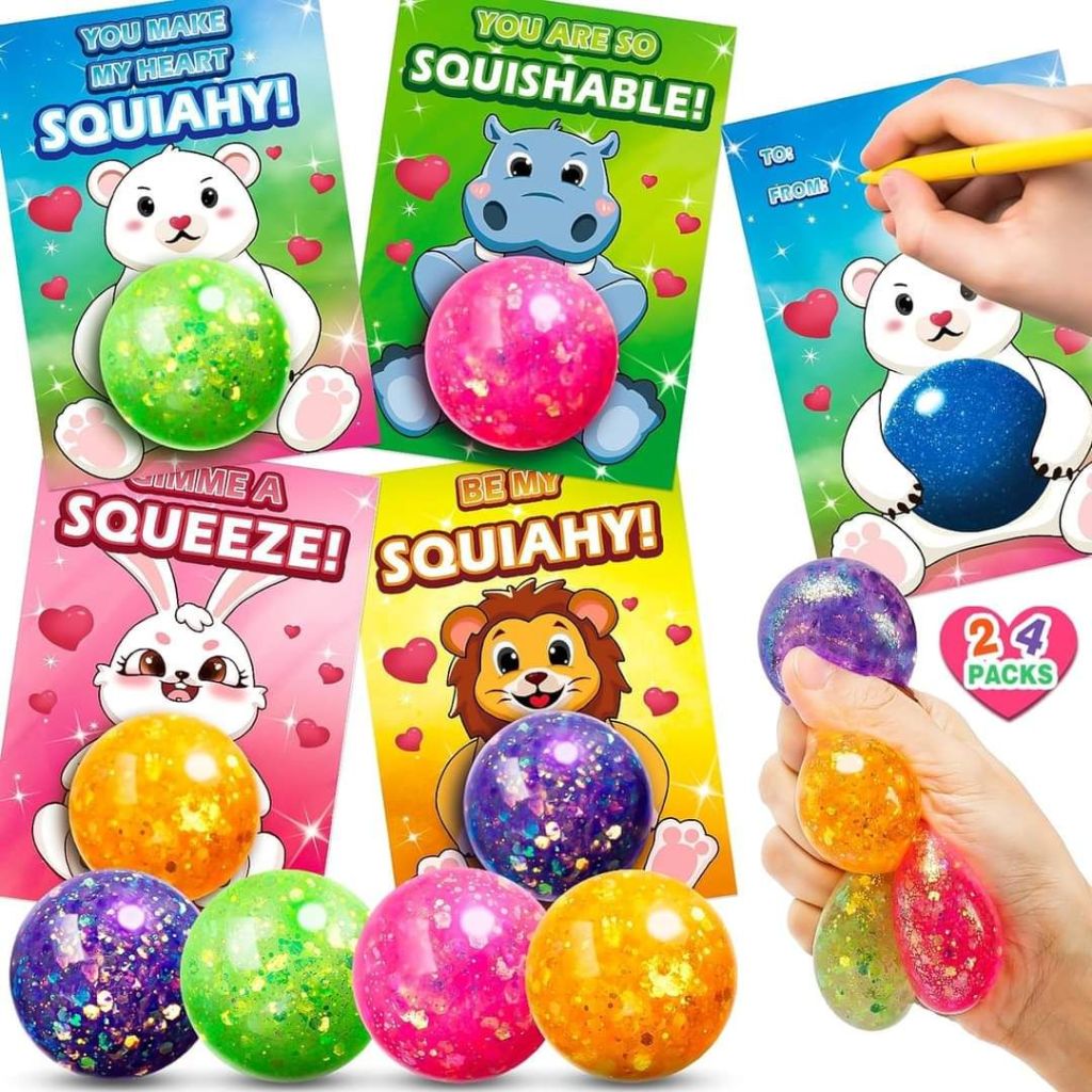 50% 0ff!! Joyour 24 Pack Valentines Day Gifts for Kids, Valentines Cards with Stretchy Balls are on deal clip qpon at checkout #ad