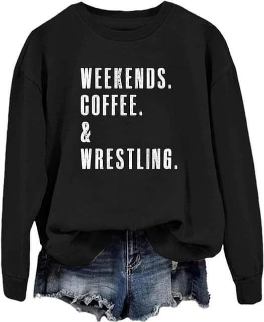 ZHANGLM Weekends Coffee Wrestling Sweatshirt Women Funny Wrestling Lover Shirt #ad