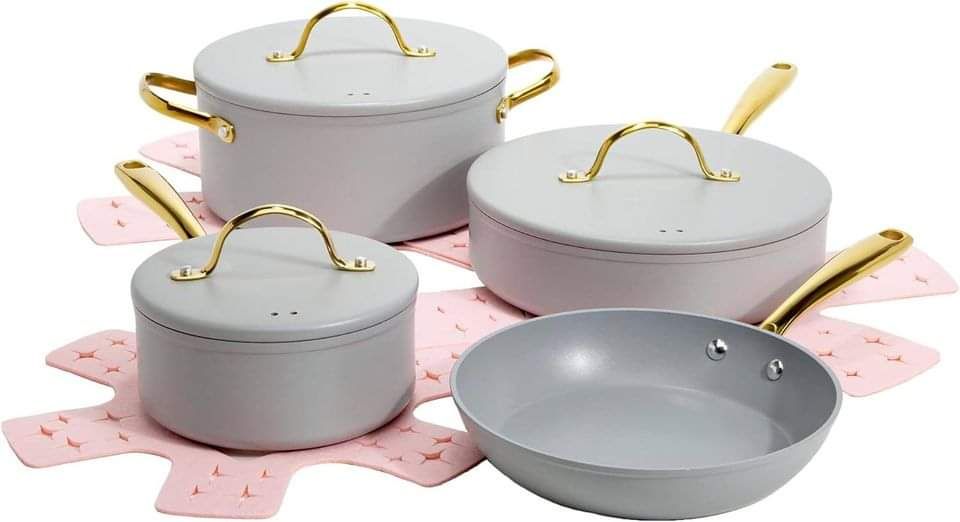 50% 0ff!! Paris Hilton Iconic Nonstick Pots and Pans Set, Multi-layer Nonstick Coating, Matching Lids With Gold Handles at checkout #ad