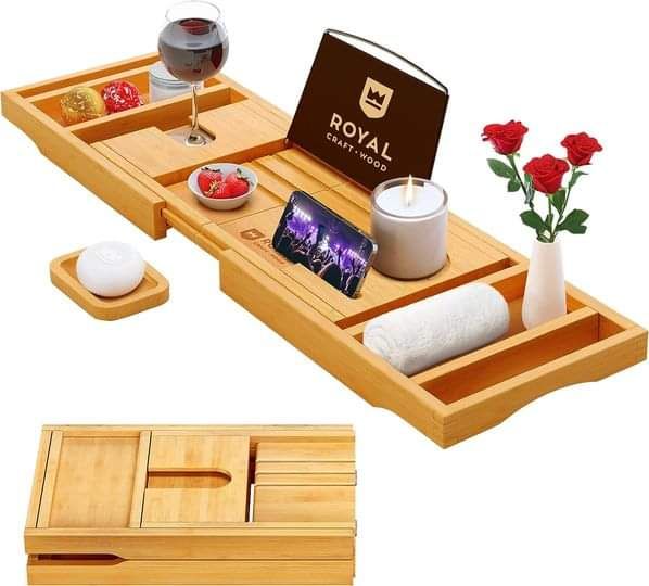 ROYAL CRAFT WOOD Foldable Bathtub Tray Caddy Bamboo Bathtub Tray Expandable, Bath Tub Table Caddy with Extending Sides is on 30% pr!ce dr0p at checkout #ad
