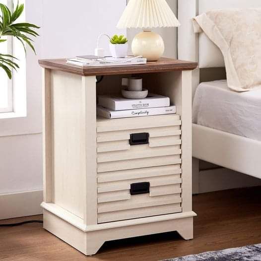 LIDYUK Nightstand with Charging Station, Farmhouse End Table with 2 Drawers & Open Cubby, at checkout #ad
