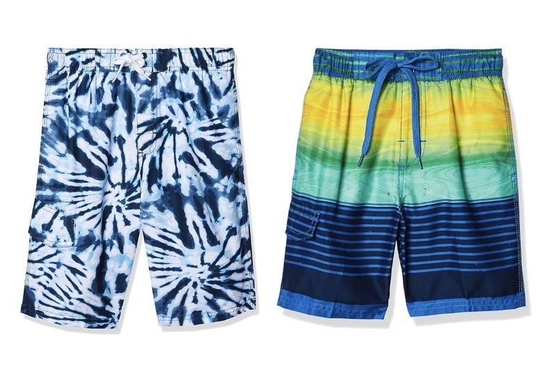 Sizes 4T, 5-6, and 7 are under $7 in one of these pictured UPF 50 swim shorts! There are tons of other options at our link! #ad