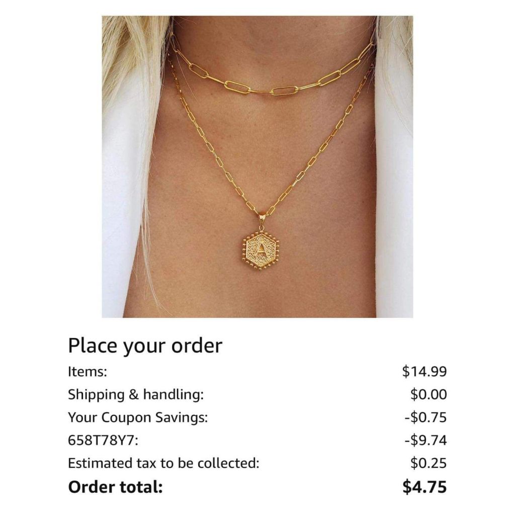 This initial necklace had nearly 45k ⭐️⭐️⭐️⭐️⭐️ reviews and drops to under $5 with 5% coupon + 658T78Y7 at checkout! We both have and love this necklace. Enter code and hit arrow to right to apply.