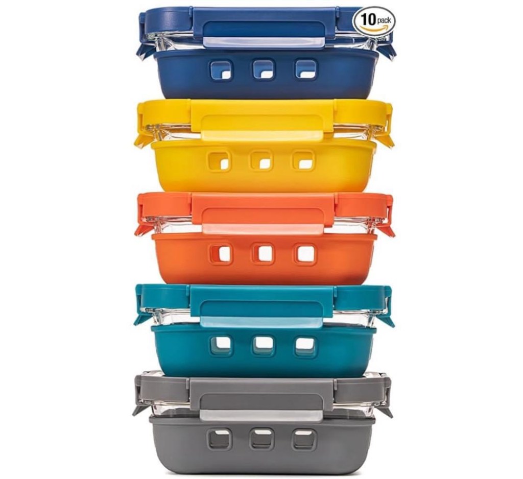 This set of 5 glass food storage set with the silicone sleeves is 52% off and gets fantastic reviews! Microwave, freezer, and dishwasher safe! #ad