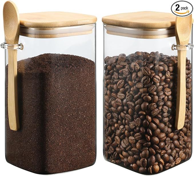 55% 0ff!! Glass Square Storage Jar with Bamboo Lids Spoons Glass Coffee Canister 40 Oz is already on pr!ce dr0p + clip qpon at checkout #ad