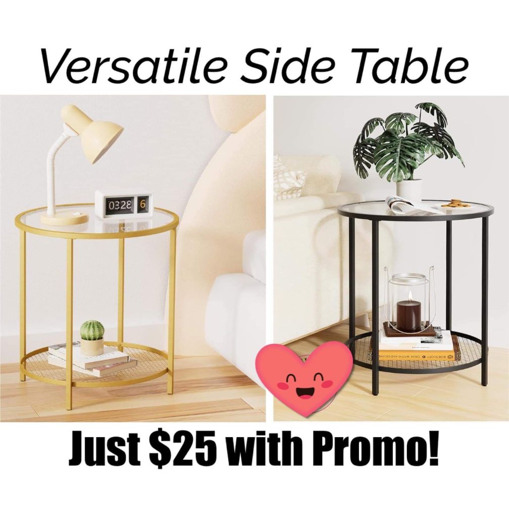 🏠🏠🏠 These 2-tier side tables have a fabulous savings! Sleek and modern with a touch of glam! Choose Black or Gold with a glass top and mesh lower shelf. Perfect as a living room accent or bedside table.