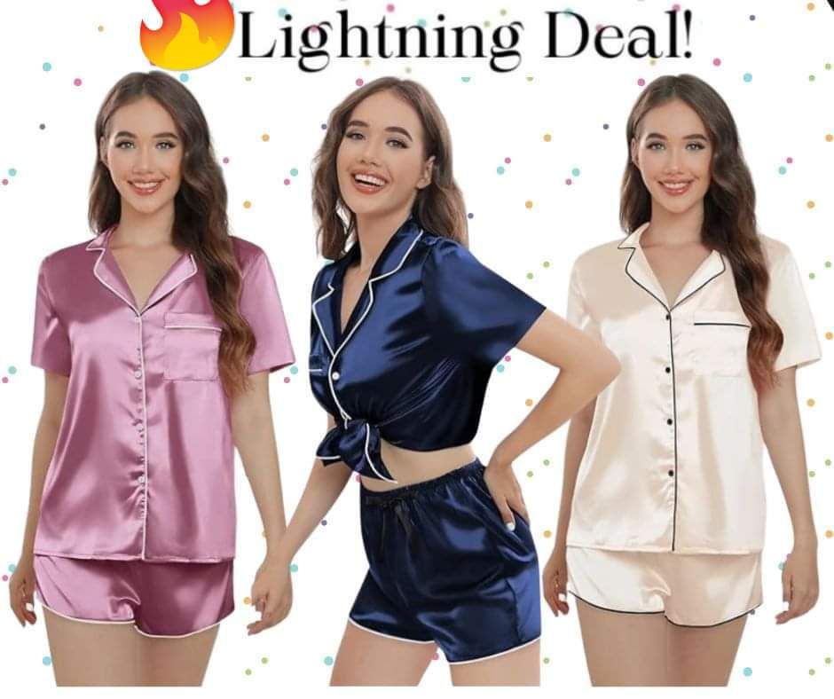😍How fabulous are these 2 Piece Satin Button Down Pajama Sets! So many lovely colors to choose from. JUST 13.99!
