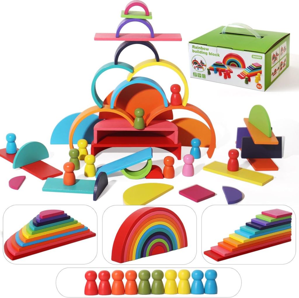 65% 0ff!! SHIERDU 45-Piece Wooden Rainbow Stack Set, 4-in-1 Building Blocks is already on pr!ce dr0p + clip qpon at checkout #ad