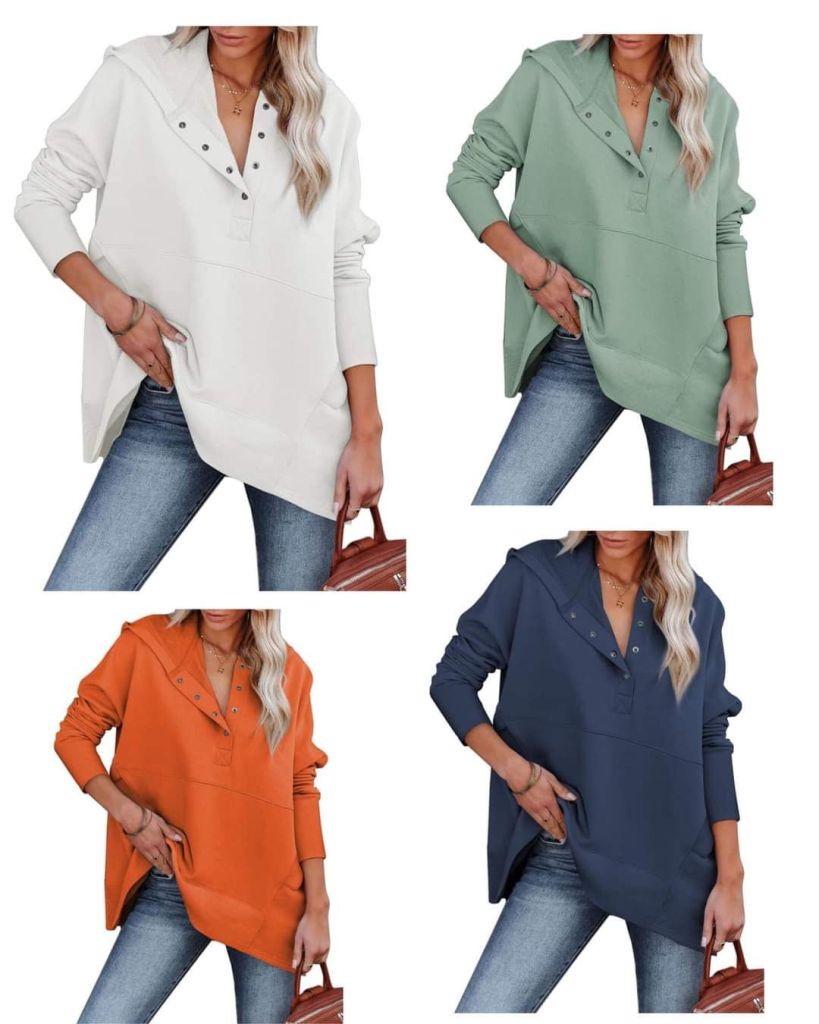 25% 0ff!! AlvaQ Women Casual Button V Neck Hoodies Oversized Pullover Sweatshirt is already on pr!ce dr0p + clip qpon at checkout #ad