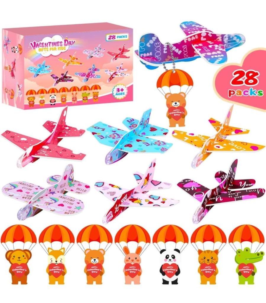 Quanquer 28 Pack Valentines Day Gifts for Kids Classroom, Foam Airplane Valentines Party Favors is on pr!ce dr0p at checkout #ad