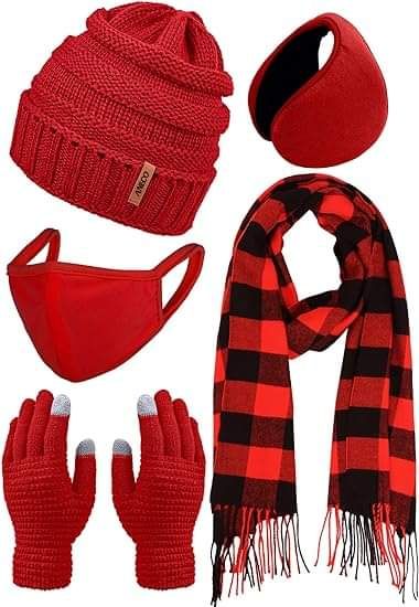 Aneco Winter Warm Sets Buffalo Plaid Scarf Knitted Beanie Hat Gloves Earloop Warm Cover for Men and Women is on 56% pr!ce dr0p at checkout #ad