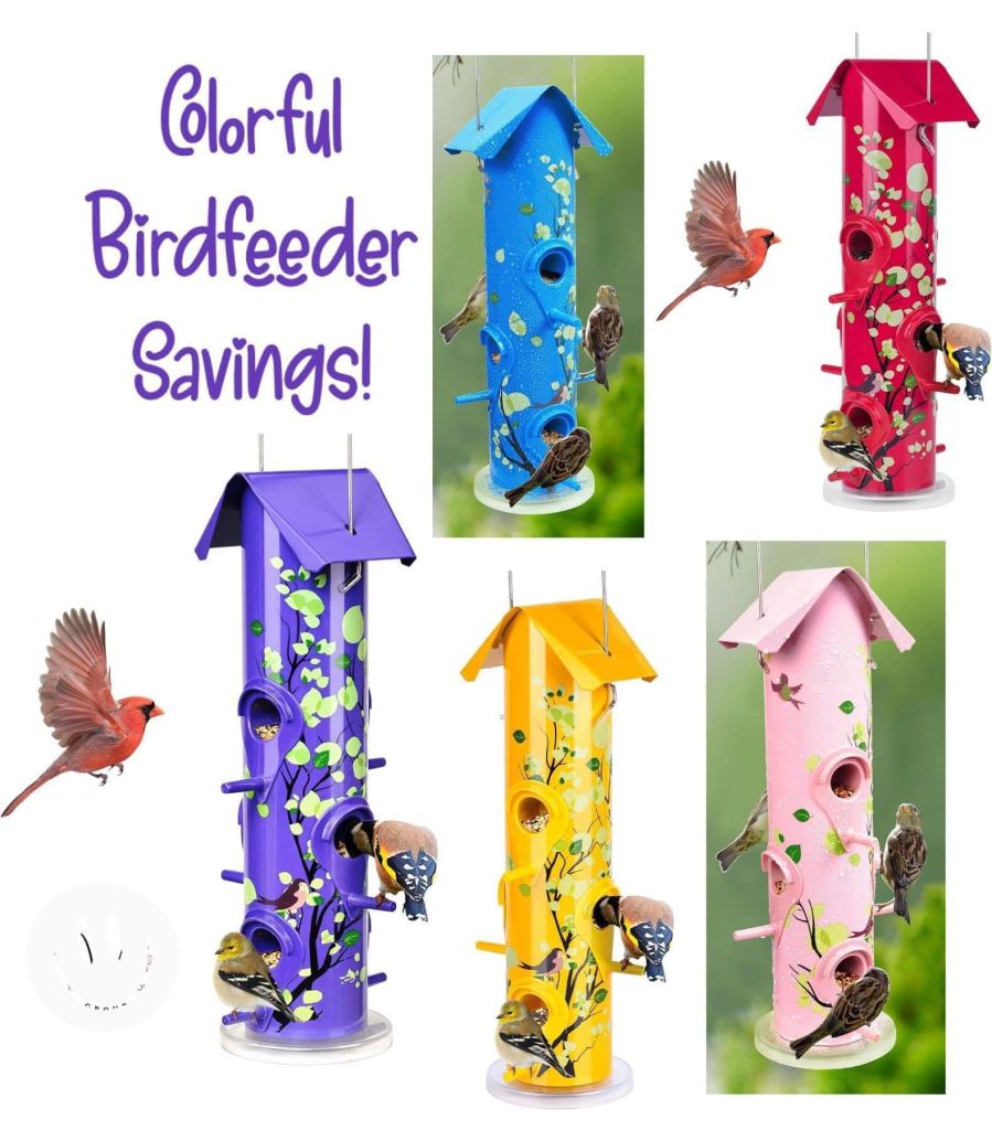 🦅🌳🦜 Gift Alert! Save on these beautiful 6-hole bird feeders in 5 color choices! Lovely painted metal in a tube style to cut down on wasted seed. So pretty!