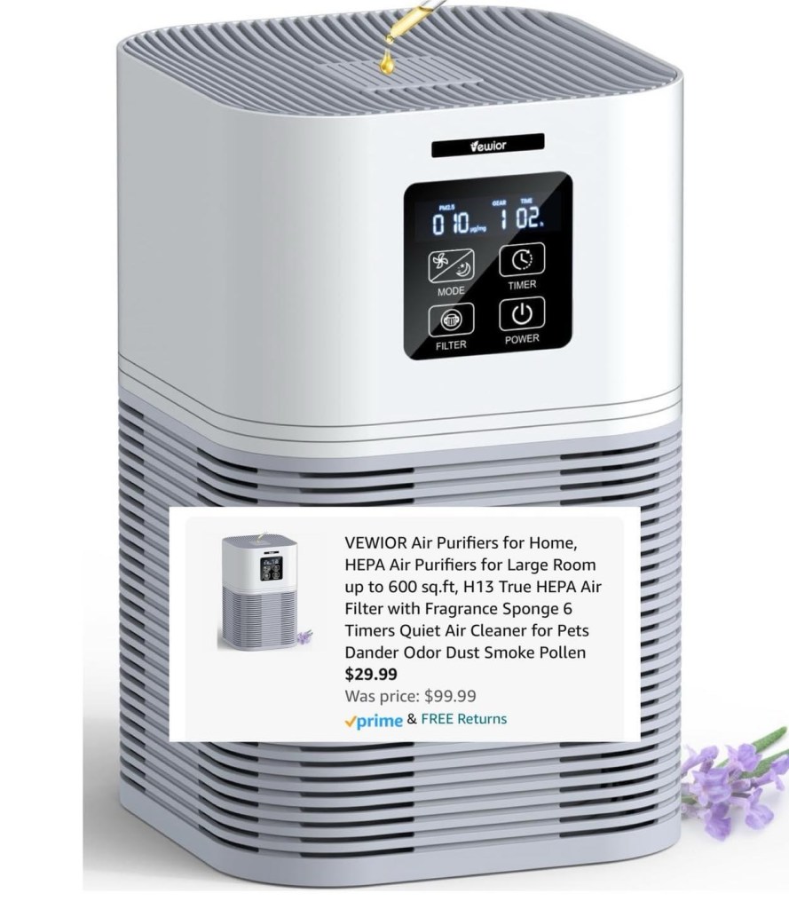 Large room air purifier $29.99 when you add to cart, clip extra coupon, proceed to checkout!!! Great reviews on this one! #ad