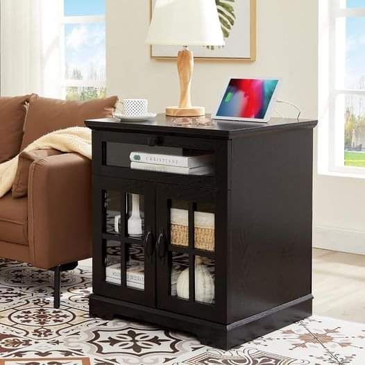 NONGSHIM Farmhouse End Table with Drawer, 24″ Large Sofa Side Table with Charging Station, is on deà l at checkout #ad