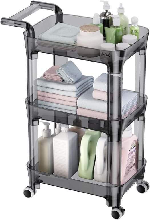 LEHOM 3-Tier Transparent Rolling Cart – Delicate Utility Cart Plastic Kitchen Storage Organizer with Lockable Wheels, #ad
