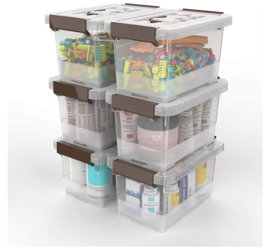 🤩🤩🤩 An awesome price on this set of SIX latch lock storage boxes. So many uses and a nice savings. Each box is just 3.50!