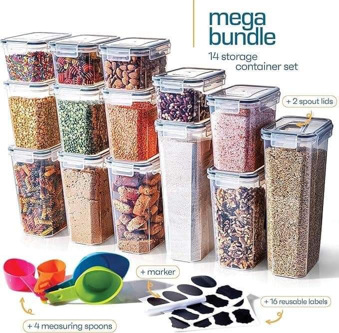 What a great set! Airtight 14pc Food Container Set With Ingeniously Designed Lids – BPA Free Pasta Storage For Pantry Organization! You get so much to