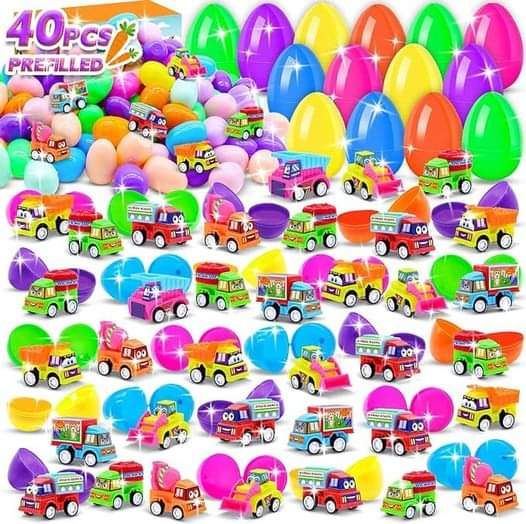 50% 0ff!! 40PCS Prefilled Easter Eggs with Pull-Back Toy Cars, Easter Eggs with Toys Inside, use qode 8SFL78NA at checkout #ad