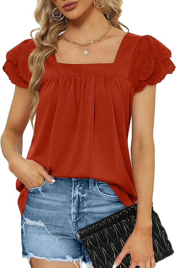 60% 0ff!! WIHOLL Shirts for Women Dressy Casual Square Neck Lace Short Sleeve Summer Tops is on deàl clip qpon+ use qode US3HKGPO at checkout #ad
