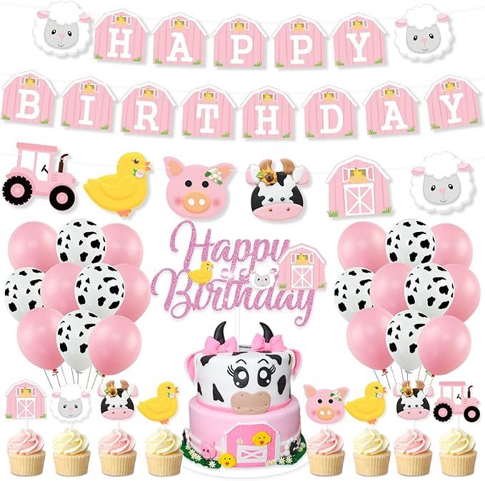 56% 0ff!! 35 Pcs Pink Farm Animals Birthday Party Supplies, Pink Floral Farm is already on pr!ce dr0p + clip qpon at checkout #ad