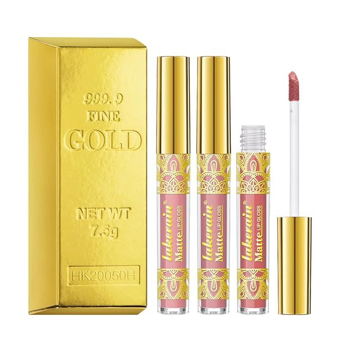 56% 0ff!! ibcccndc 3PCS Velvet Nude High Pigment Gold Glitter Liquid Lipstick Set is already on deàl + clip qpon at the product page #ad