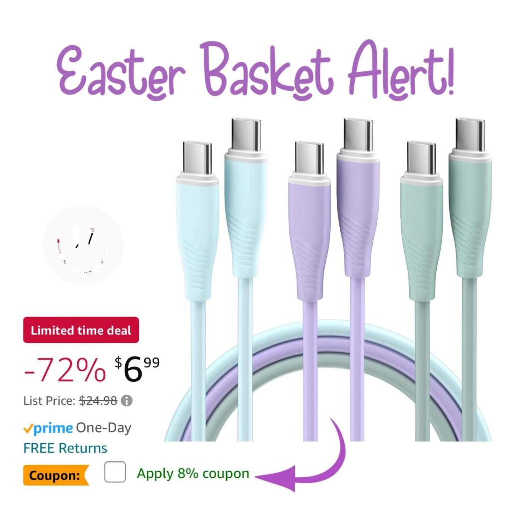 π₯π₯π₯ Type C cables! Look at these lovely colors! We always need charging cables in my house, so they might as well be pretty ones! You get a pack of THREE 6-ft USB-C to C, compatible with MacBook, Samsung, iPhone 15 and more.