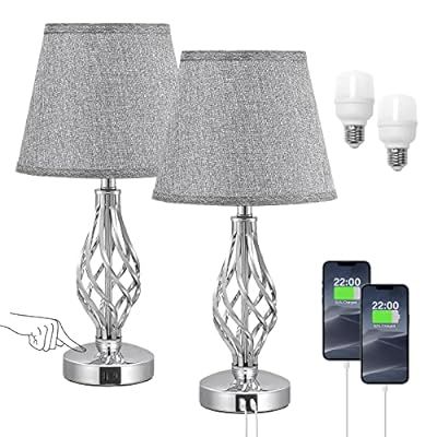 🏠🏠🏠 An excellent savings on this set of TWO 18” accent lamps with Grey shades! Touch control with 3-level dimming. Two LED bulbs are included and you have the USB-A and C ports right on the base!
