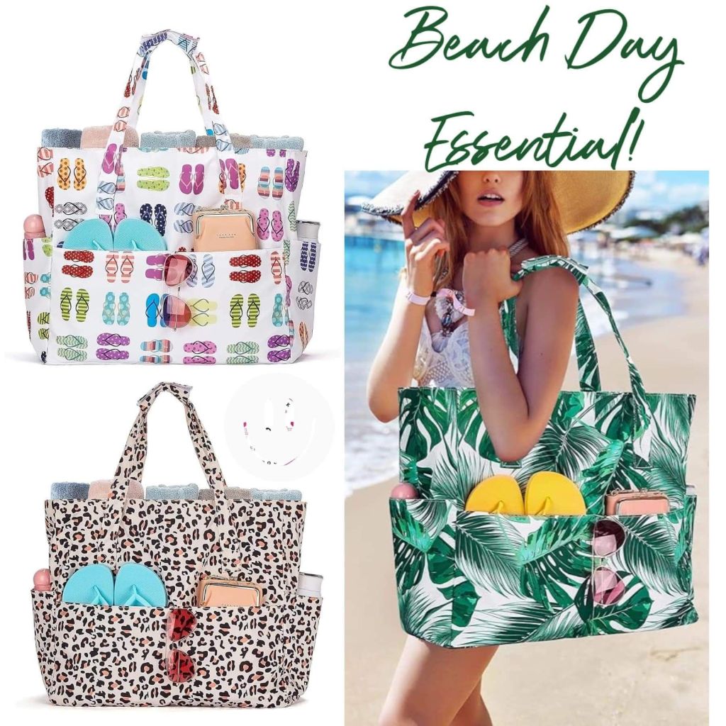 ποΈποΈποΈ These over-sized beach totes come in the cutest prints! Lightweight and water/sand resistant with tons of pockets outside and a wet section inside.