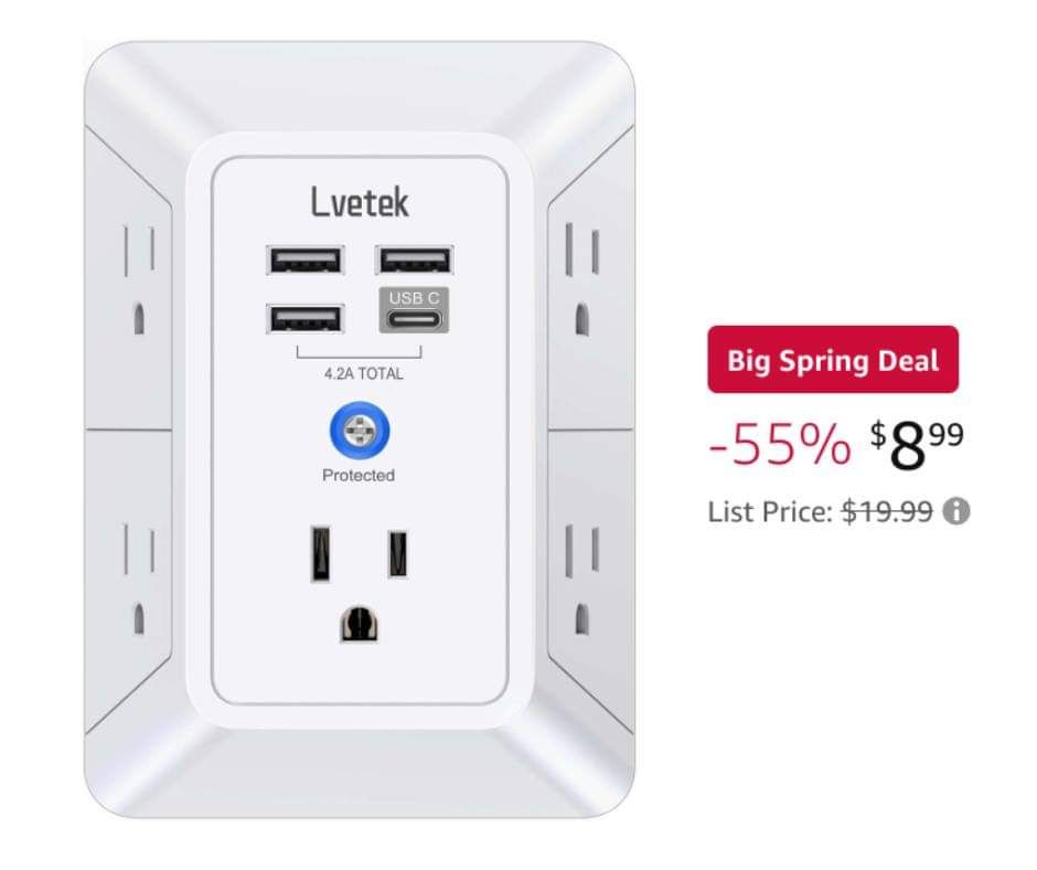 5-Outlet Surge Protector Wall Charger with 4 USB Ports 8.99 (reg 19.99)