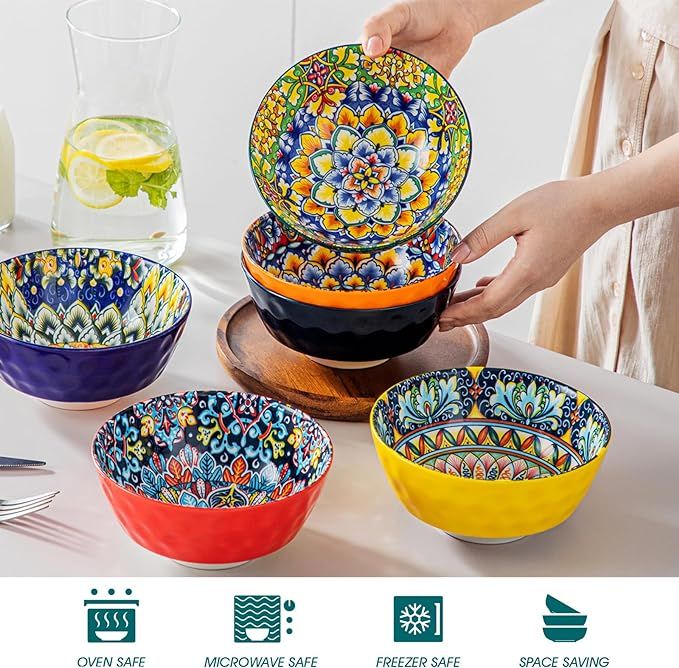 🏠🏠🏠 These ceramic cereal bowls are absolutely gorgeous. If you love color, this vibrant set of SIX is for you! A versatile 26-Oz size, perfect for ice cream, fruit, soup and more!