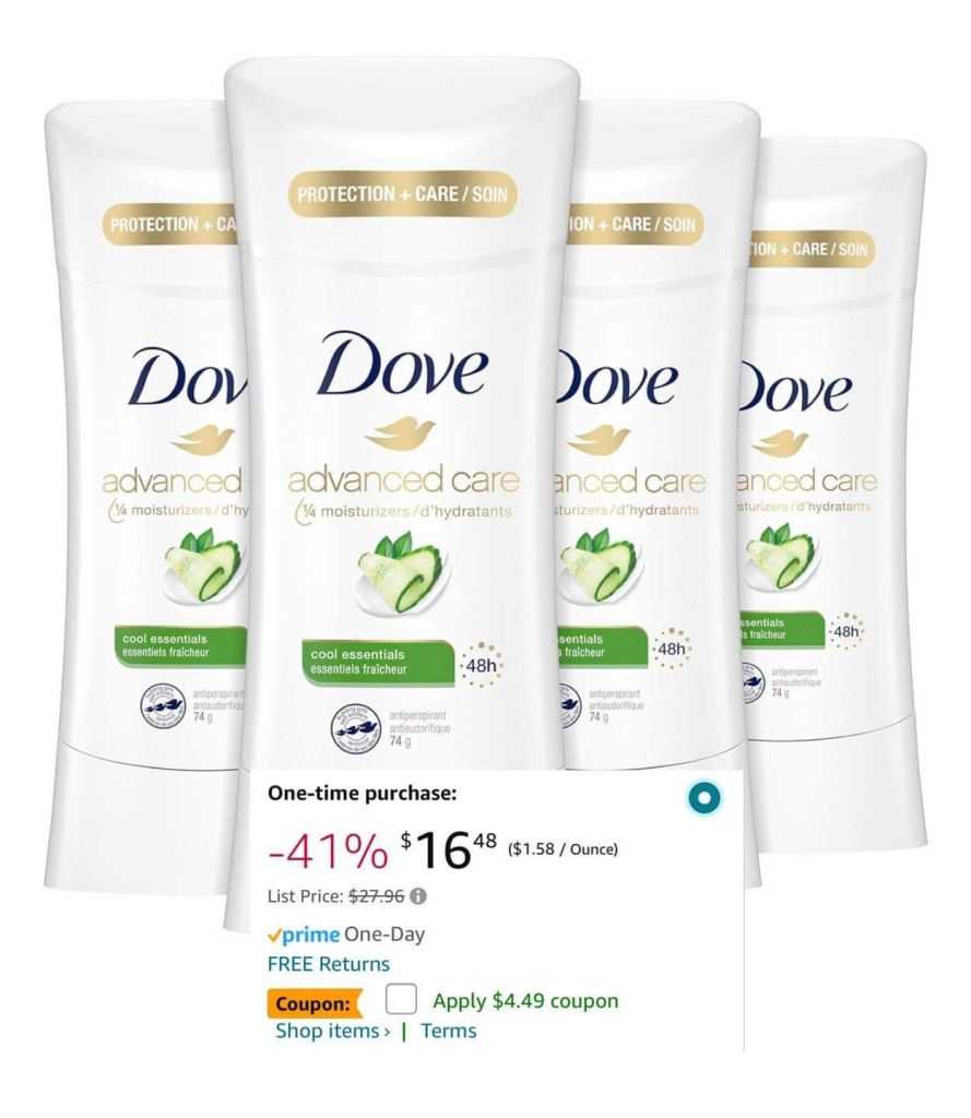 Nice savings on this Dove 4 pack shown!! Even less with S&S!
