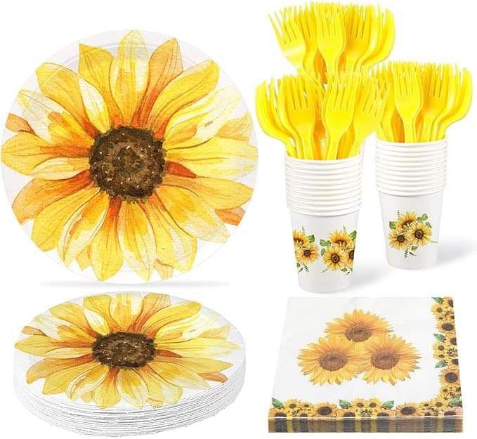 50% 0ff!! Zubebe Sunflower Party Supplies Set for 24 Guests Sunflower Paper Plates and Napkins is on pr!ce dr0p at checkout #ad
