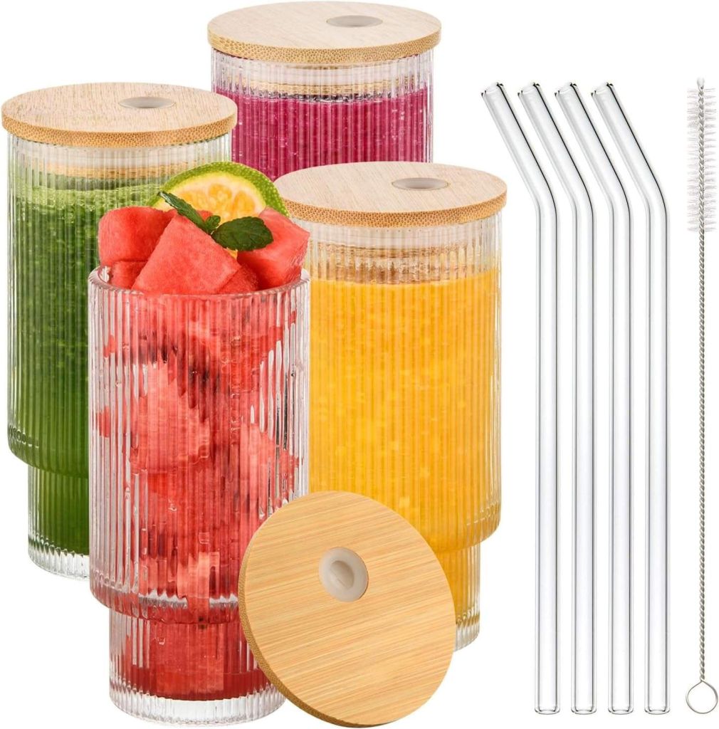 πππ Save 50% on the 4-Pack of 11oz Textured Glasses with Bamboo Lids!! Grab them for ONLY 13.99 at checkout!! Includes straws with cleaning brush. Great for iced tea, lemonade, Mojitos & Sangria!!