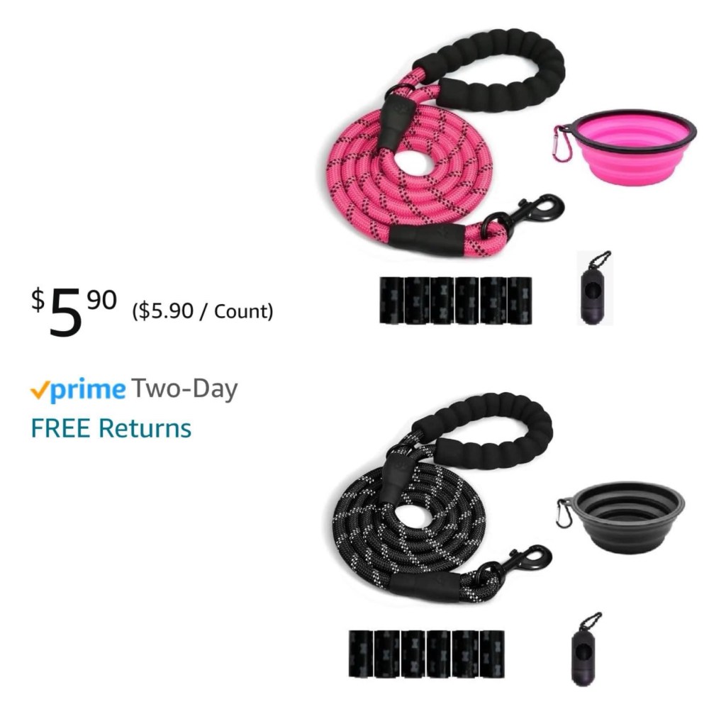 Our favorite padded dog leash (you get the entire bundle) — down to only $5.90 in these colors shown! Great to donate to local shelters and rescues. #ad