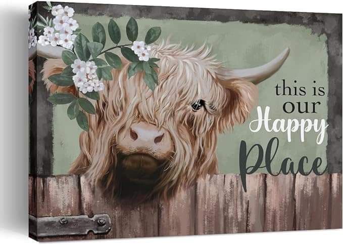 20% 0ff!! Farmhouse Highland Cow Wall Art Bathroom Wall Decor Retro Rustic Picture is on pr!ce dr0p at checkout #ad