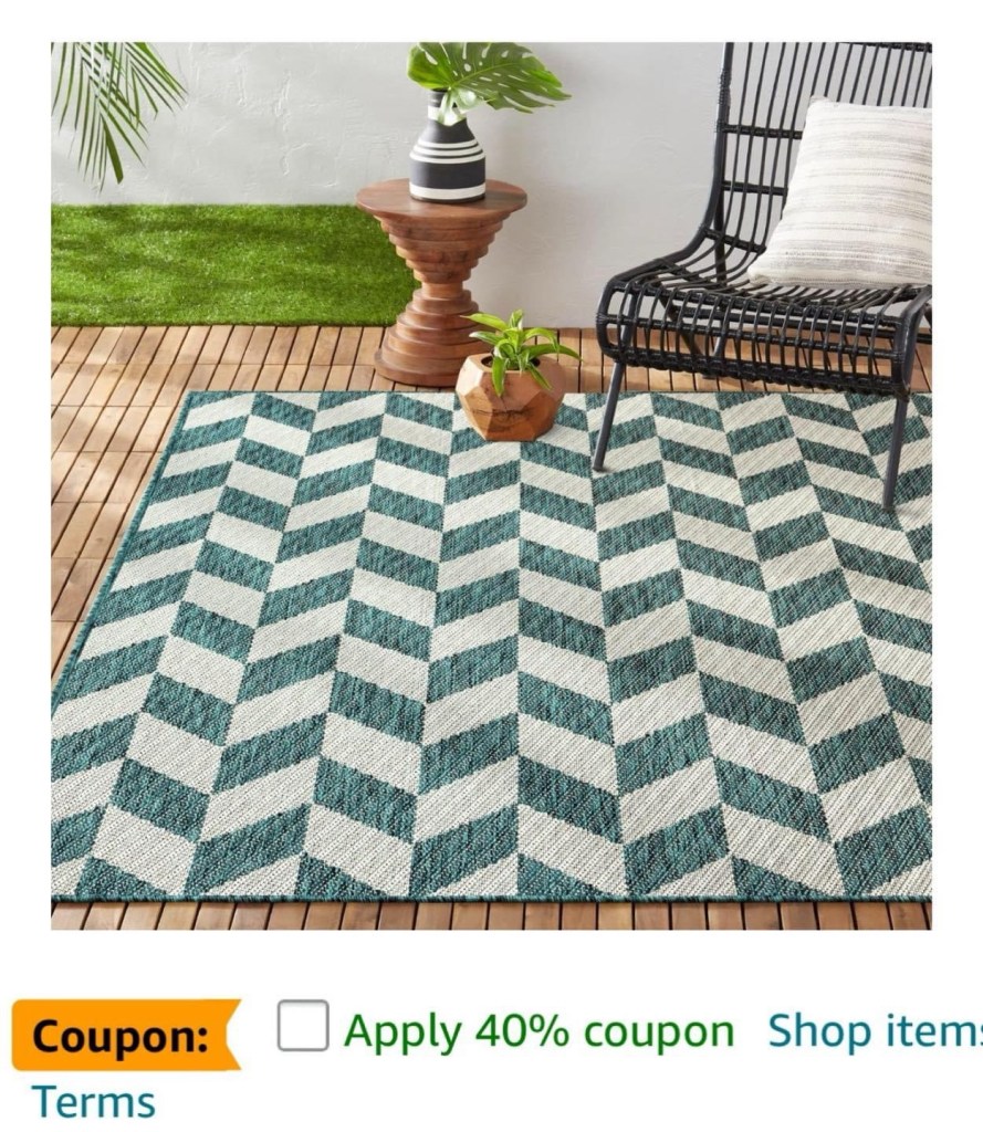 Outdoor Rug stutidavewpApril 10, 2024Amazon, Deals Post navigation PreviousNext Woah!! This green and cream outdoor rug has a big 40% off coupon for the 5×7! #ad SHOP DEAL Share this: Share on X (Opens in new window) X Share on Facebook (Opens in new window) Facebook Like Loading...