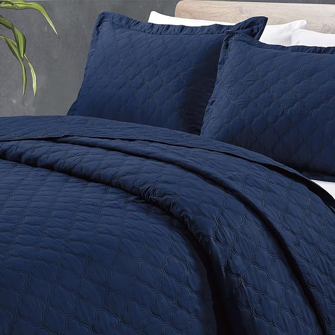 63% 0ff!! Quilt Set Coverlet King Size Navy Blue 3 Piece,Microfiber Lightweight Soft Quatrefoil Pattern Bedspread is on pr!ce dr0p at checkout #ad