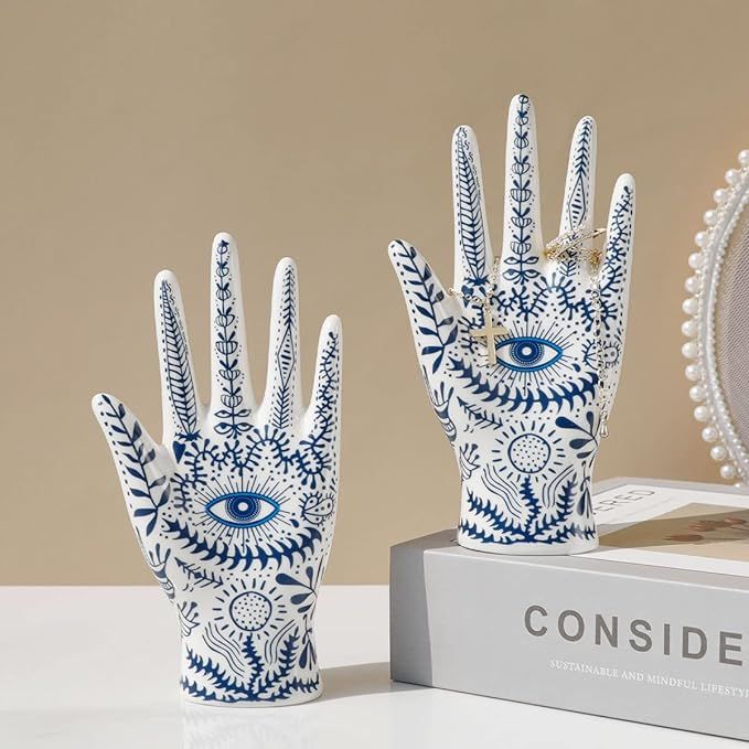 🖐️🖐️🖐️ What a fun way to store and display your favorite jewelry! This adorable ceramic Hamsa holder makes a unique gift! Choose from 2 designs and the promo works on multiples. They drop to just $8.50!