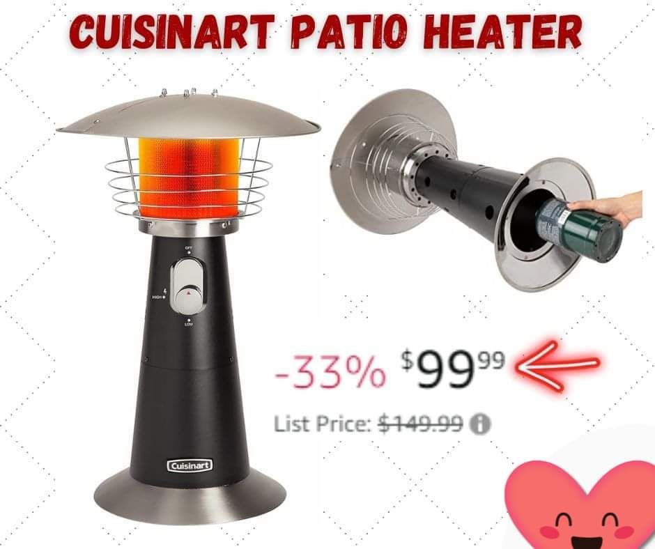 🔥 🔥 🔥 Stay cozy and comfortable in chilly evenings with the Cuisinart Portable Tabletop Patio Heater. Compact and portable design makes it perfect for patios, decks, and camping trips. Enjoy your outdoor space with this stylish and efficient heater. The patio heater is 33% off and now 99.99.