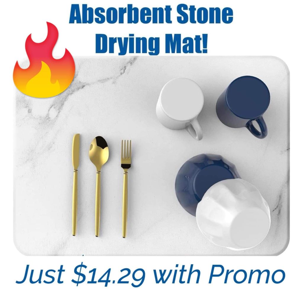 💦💦💦 The absorbent stone drying mats are back! I’m obsessed with mine! I have one next to the sink for wine glasses and such, and one under Sammy’s food and water dishes to keep the slobber under control. 🐶 This is a fantastic savings on the “Light White Marble” option!