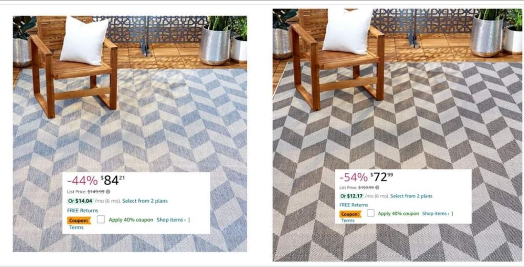 Woah! This outdoor rug size 6×9 ft in this pretty blue and the grey/cream have a large clickable savings that may not last long!