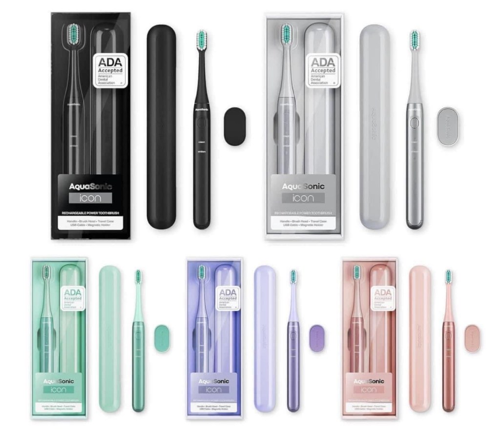 Woah! These AquaSonic Rechargeable Toothbrush | Magnetic Holder & Slim Travel Case | 2 Brushing Modes & Smart Timers have coupons on several colors making them just $14.95!! #ad