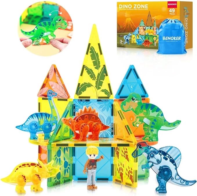 What!? This 49 piece Dinosaur Magnetic Tile Set is 46% off + save another 20% when you clip the coupon and redeem the promo! #ad