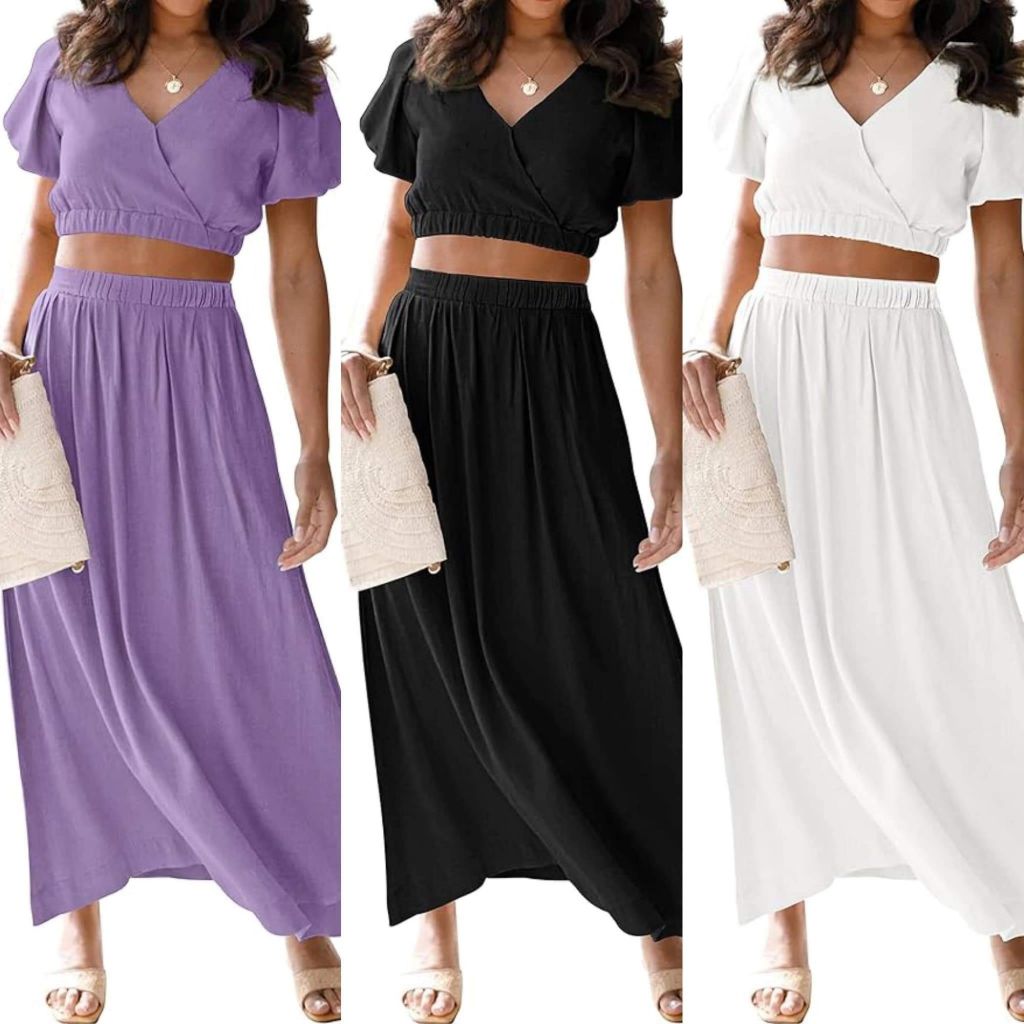 Double score on this cute two piece set! You’ll see it drop by 30 % + there’s another 20 % off clickable on most options! ,❤️ You can play with it and pull the skirt up higher if you don’t want to show any waist and it looks like a dress!