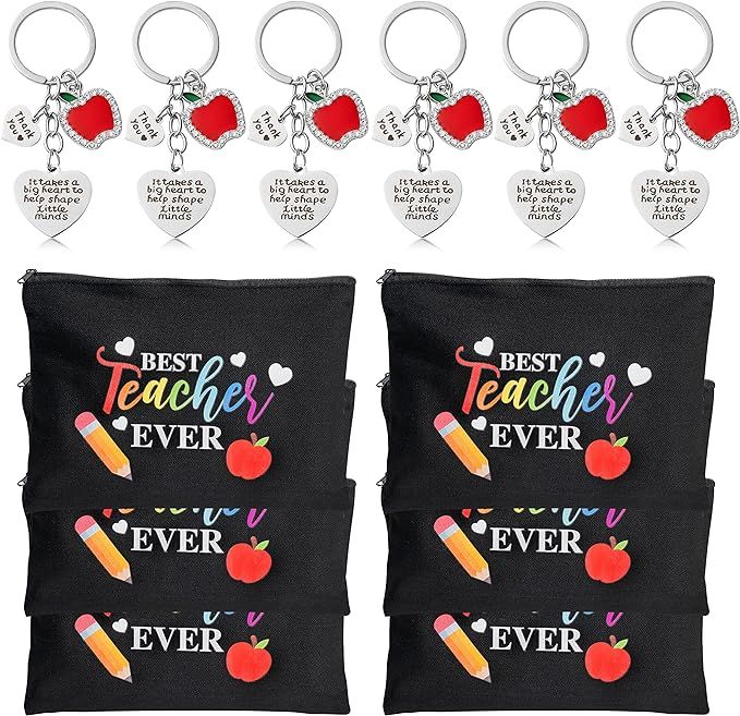 30% 0ff!! WATINC Teacher Appreciation Gifts Set 6Pcs Thank You Apple Heart Teacher Keychains & 6Pcs Best Teacher Ever Makeup Cosmetic Pencil Bags is on pr!ce dr0p at checkout #ad