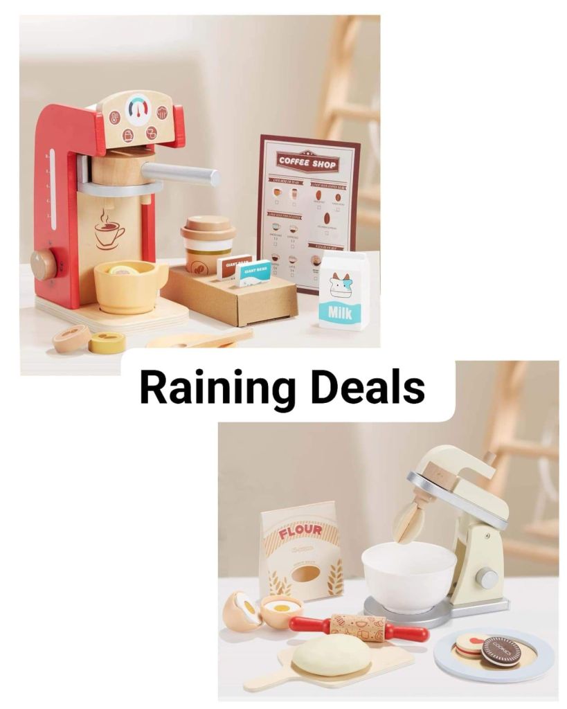 These adorable wooden kitchen toy sets are 50% off at checkout! The Coffee Shop one is SO cute!