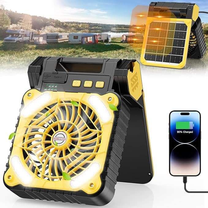 40% 0ff!! Solar Powered Fan for Camping, 10400mAh Rechargeable Battery Operated Portable Fan with LED Lantern is on pr!ce dr0p + use qode ACJ3QSGR at checkout #ad